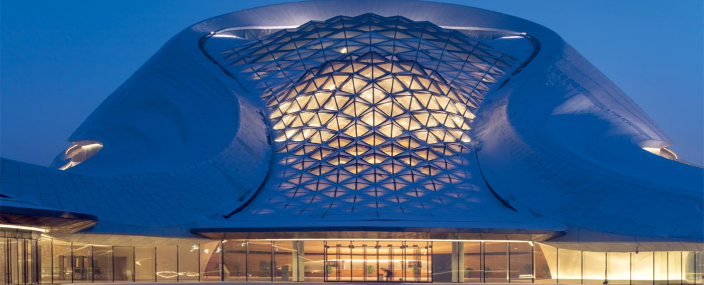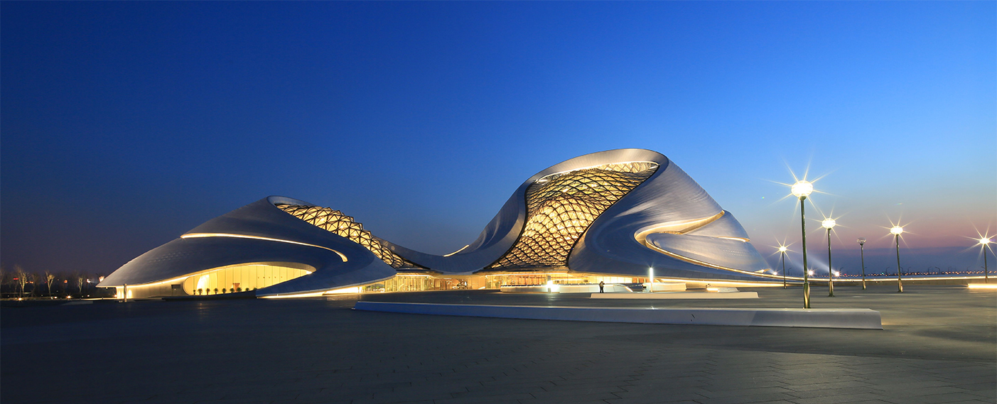 哈爾濱大劇院位于哈爾濱市松北區(qū)文化中心島內(nèi),包括大劇院(1600座)、小劇場(400座)、地下車庫及附屬配套用房等。外部圍護結(jié)構(gòu)為鋼結(jié)構(gòu)殼體,采用了異型雙曲面的外型設(shè)計,是哈爾濱的標志性建筑。2016年被評為世界最美建筑。
