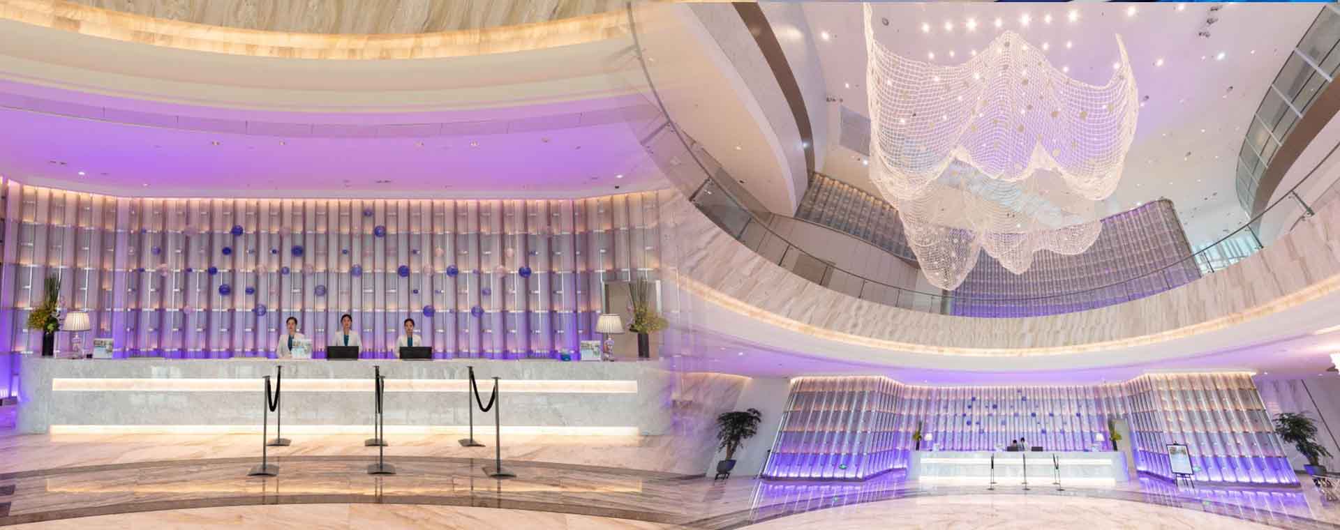 在接待臺(tái)背景墻壁上,紫色的內(nèi)透光,形成浮雕感的藝術(shù)效果,毫不掩飾地訴說(shuō)著浪漫主義情懷,空間優(yōu)美典雅,讓人身心放松、舒適。