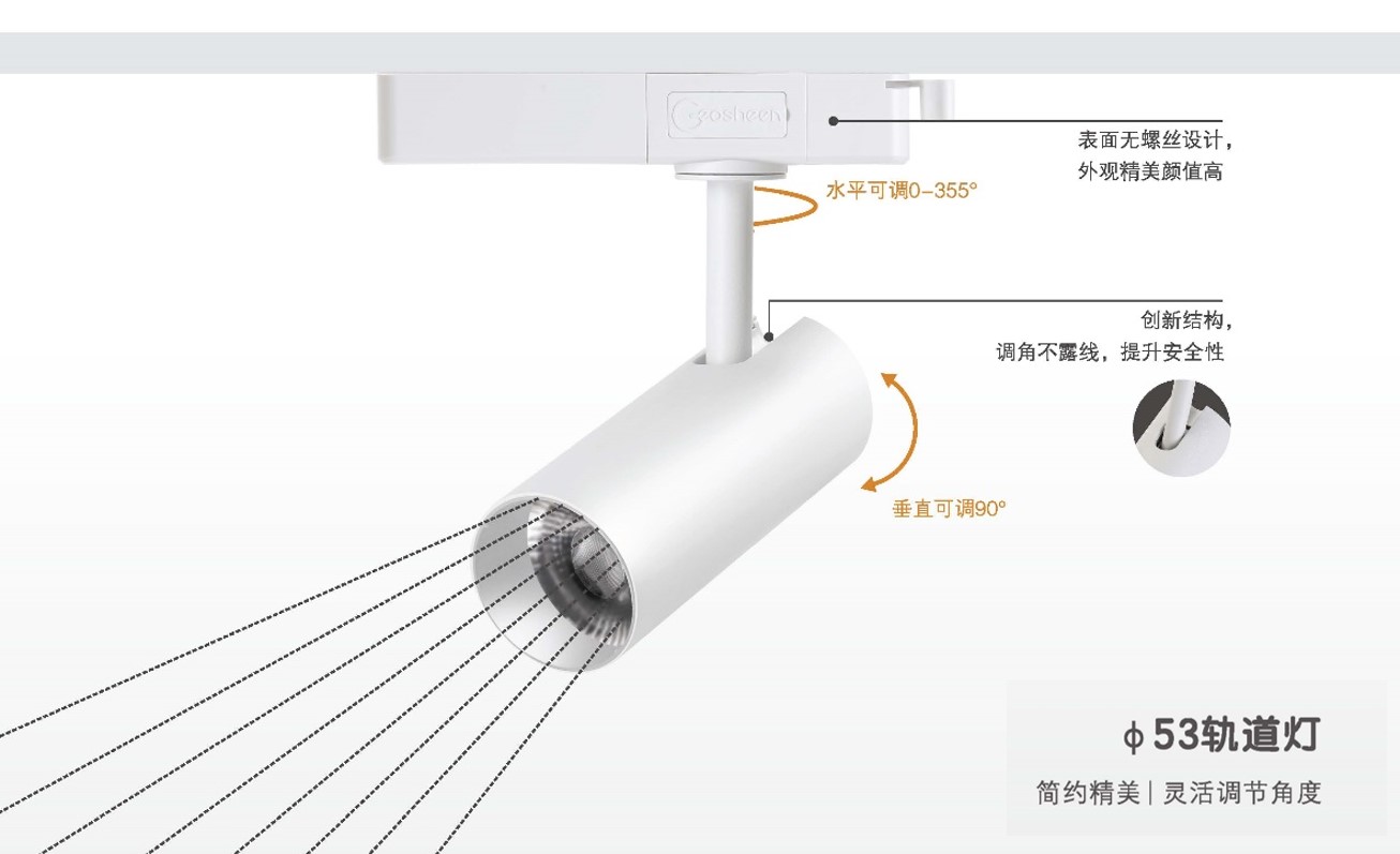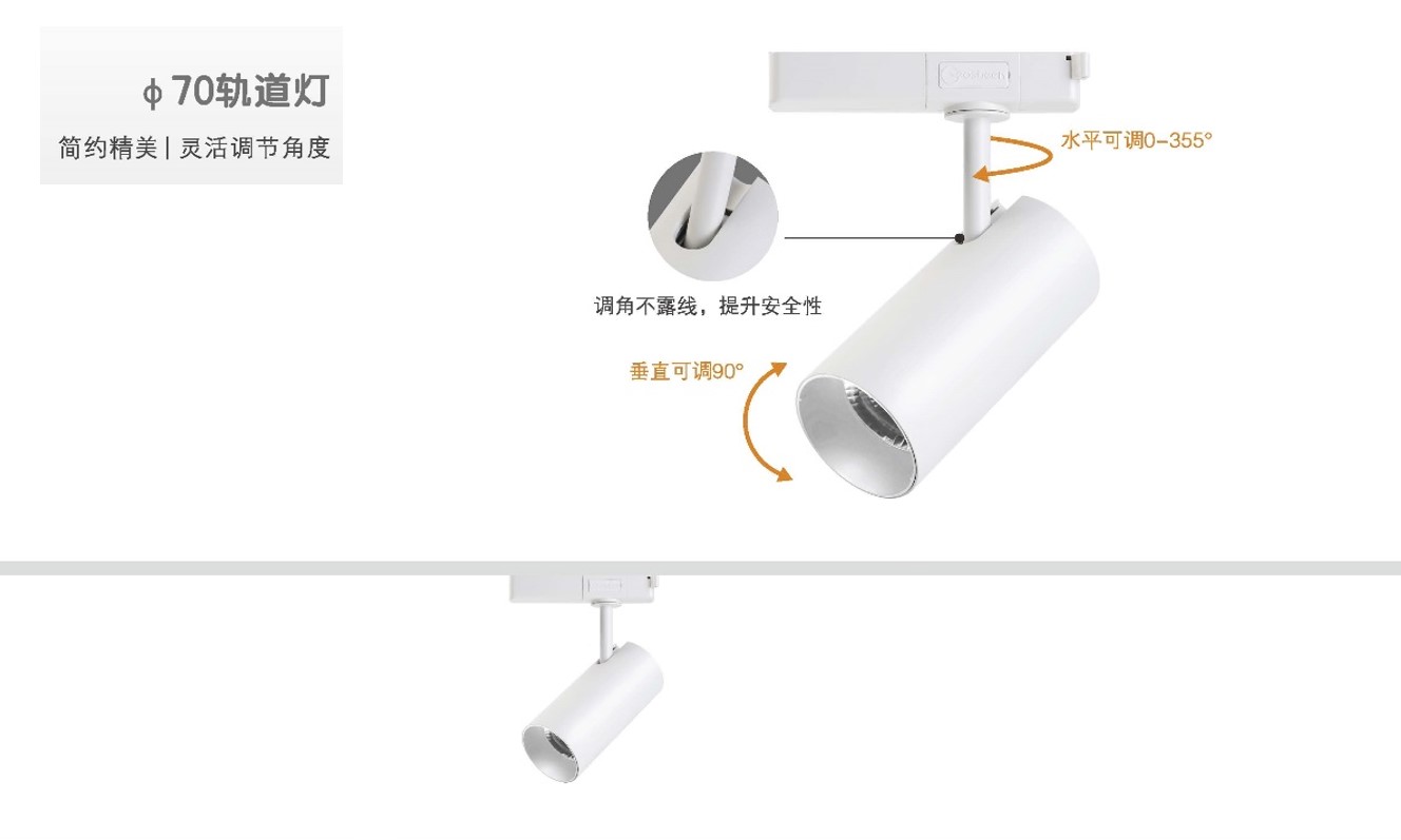 KA甄選軌道燈榫卯結(jié)構(gòu)設(shè)計,外觀精美顏值高;垂直和水平調(diào)節(jié)不露線設(shè)計,提升安全性;垂直30°,水平355°調(diào)節(jié)照射方向;電源盒與三線軌道條同寬設(shè)計,與空間融入一體,契合各種裝修風(fēng)格;