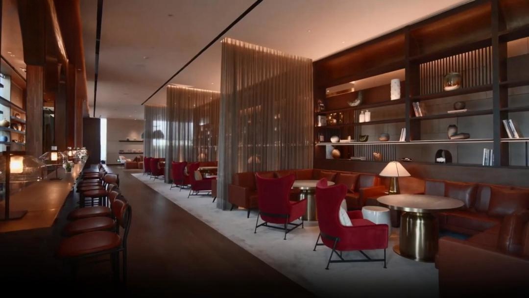 酒店可以成為目的地的文化試金石,將當(dāng)?shù)仫L(fēng)味與坊間體驗、真實感受和靈感結(jié)合在一起,為人們留下豐富的想象空間。初見木棉花酒店,人們可輕易感受到國際化的格調(diào)中蘊含著的文化考量,在地性的設(shè)計表達吐露著杭州山水的雅致意蘊。由柏悅和瑰麗酒店御用澳大利亞著名BAR STUDIO設(shè)計團隊操刀設(shè)計以錢塘江潮波瀾為靈感,設(shè)計團隊提煉出流動的線條,水紋狀的樓面呈現(xiàn)出波光斑斕的美感。