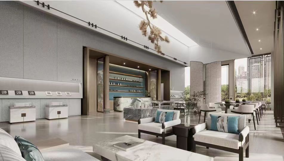 接待洽談區(qū)是形象展示的重要組成部分,代表整個(gè)樓盤的氣質(zhì)與風(fēng)范。強(qiáng)化不同群體的感性認(rèn)知與歸屬感,包裹式的靠背椅,營(yíng)造更為放松的洽談氛圍。該區(qū)域燈光營(yíng)造不僅僅是情緒的最佳表達(dá)方式,更是超越于技藝之外的可體驗(yàn)的情感傳達(dá)。因此,需要考慮光環(huán)境的整體性,選擇色溫較高Geosheen極成C·匠系列防眩天花燈,這樣可以擴(kuò)大視覺(jué)空間感,提高洽談區(qū)的氛圍。