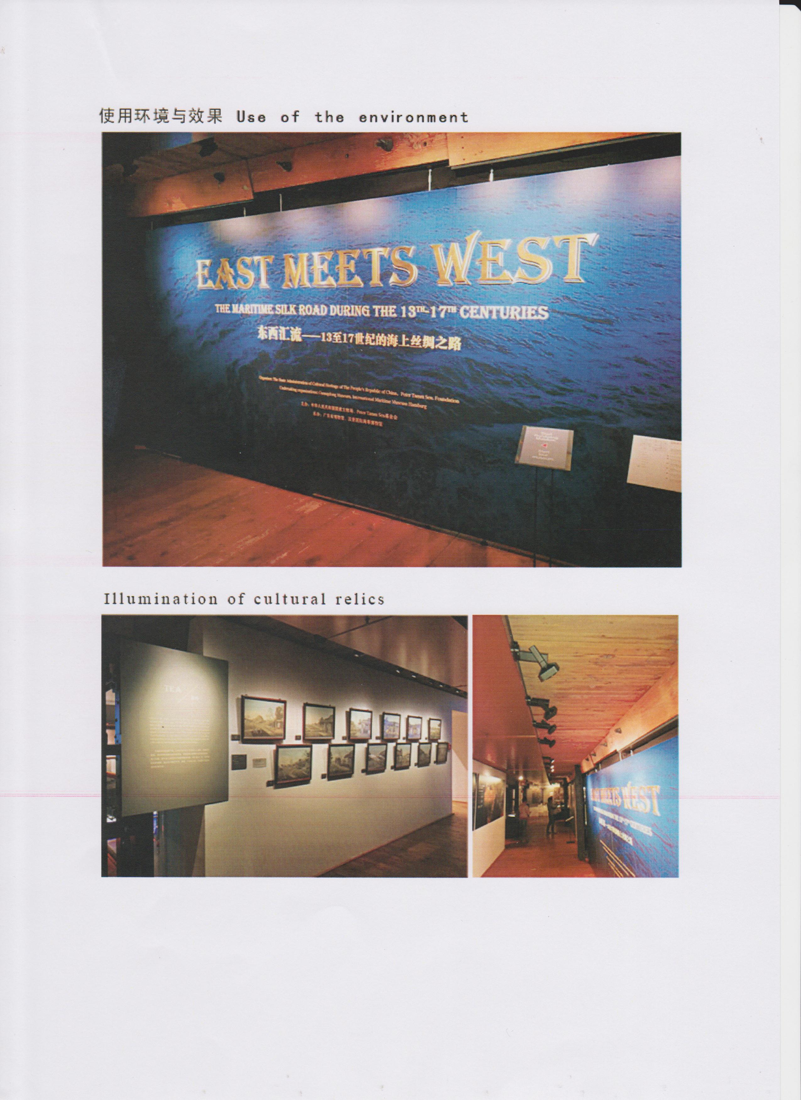 德國漢堡國際海事博物館通過本次展會的考察做出如下評價及意見:“Geosheen極成燈具,具有成熟的光學技術和外觀設計,即能夠滿足文物保護的需求又符合博物館整體設計的藝術美學,對陳列品的色彩穩(wěn)定性和還原性如青銅、陶瓷、紙張等都是優(yōu)秀的,光照效果好。