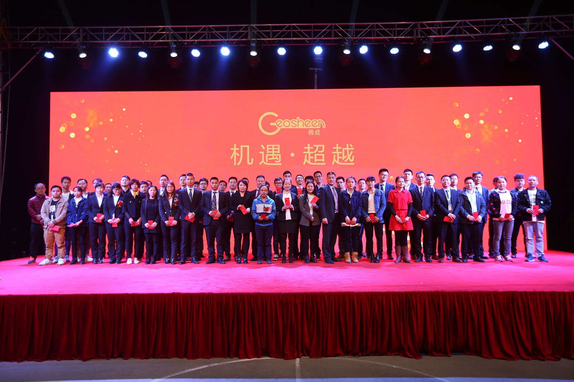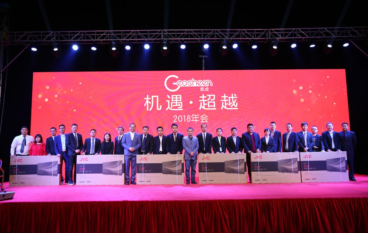 2018年1月23日,以“機遇·超越”為主題迎新慶典晚會在極成工業(yè)園隆重舉行,此次慶典晚會參加人員除了Geosheen極成全體員工之外,還有政商界代表、合作伙伴、部分經(jīng)銷商代表等約1000人歡聚一堂,共度聯(lián)歡。