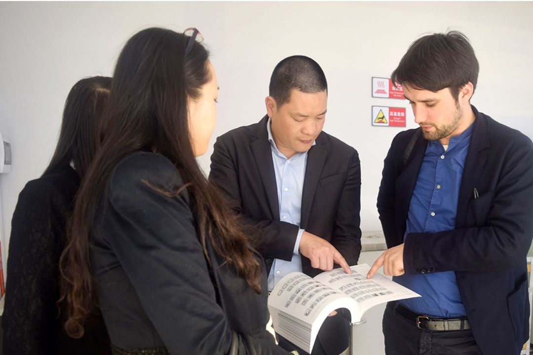 董事總經(jīng)理林陳椿先生與德國工業(yè)設計師Stephan Schulz共同討論