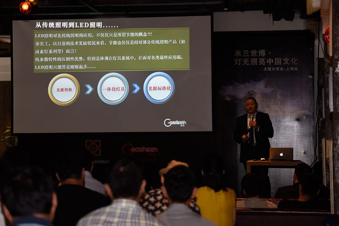 恬靜的午后,優(yōu)雅的咖啡廳,還有濟濟一堂的設(shè)計師們,組合成了繁華上海一角最養(yǎng)眼的景致。9月18日下午兩點半,“米蘭世博·燈光照亮中國文化”主題分享會在上海市徐匯區(qū)石龍路569創(chuàng)意園內(nèi)舉行。此次分享會由全聯(lián)房地產(chǎn)商會酒店投資商會與深圳市極成光電有限公司聯(lián)合主辦,吸引了來自上海的地產(chǎn)開發(fā)商、酒店管理公司和設(shè)計屆的精英共100余人出席。