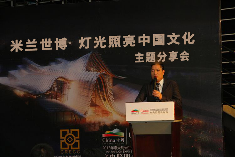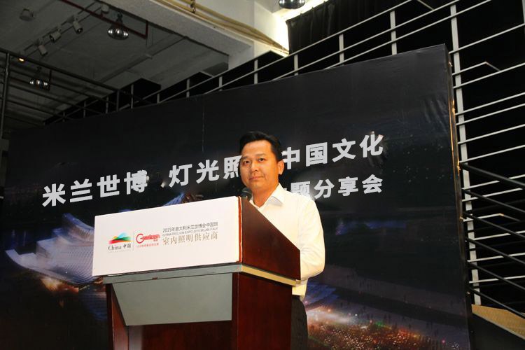 “米蘭世博·燈光照亮中國文化”主題分享會上,全聯(lián)房地產(chǎn)商會酒店投資商會執(zhí)行會長冼鋒代表主辦方歡迎到場的各位嘉賓。他同時提到,全國工商聯(lián)房地產(chǎn)商會、全商聯(lián)酒店投資商會的企業(yè)家代表團將于本月20日前往意大利參加米蘭世博會,尋找流行元素,發(fā)現(xiàn)未來商機。屆時,將實地見證極成照明如何賦予中國館“生命”質(zhì)感,同時,祝福并期待“極成光電”乘米蘭世博之榮光,為中國房地產(chǎn)及酒店業(yè)不斷帶來新的驚喜。