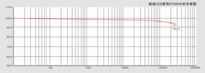 極成LED照明為保證出光的完美和產(chǎn)品的穩(wěn)定,首先在芯片選擇上,選用了COB模式的光源,給完美的照明應(yīng)用提供了更多的保證。COB封裝的芯片出光均勻,散熱性好,運(yùn)行穩(wěn)定,可根據(jù)不同應(yīng)用目標(biāo)設(shè)計(jì)出不同光型的產(chǎn)品(如圖一)。同時(shí),極成的實(shí)驗(yàn)室內(nèi)有長(zhǎng)時(shí)間在高溫下點(diǎn)亮的LED燈,經(jīng)過(guò)37500小時(shí)的試驗(yàn),發(fā)現(xiàn)它的色溫依然沒(méi)有漂移,光衰不超過(guò)7.5%,高度穩(wěn)定的色溫和光效,充分展現(xiàn)出強(qiáng)大而穩(wěn)定的性能(如圖二)。