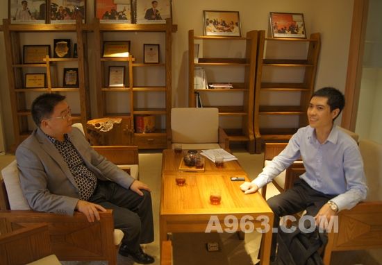 極成光電董事長(zhǎng)林陳鋒與中華室內(nèi)設(shè)計(jì)網(wǎng)總裁趙慶祥在光體驗(yàn)中心的貴賓休息廳進(jìn)行交談