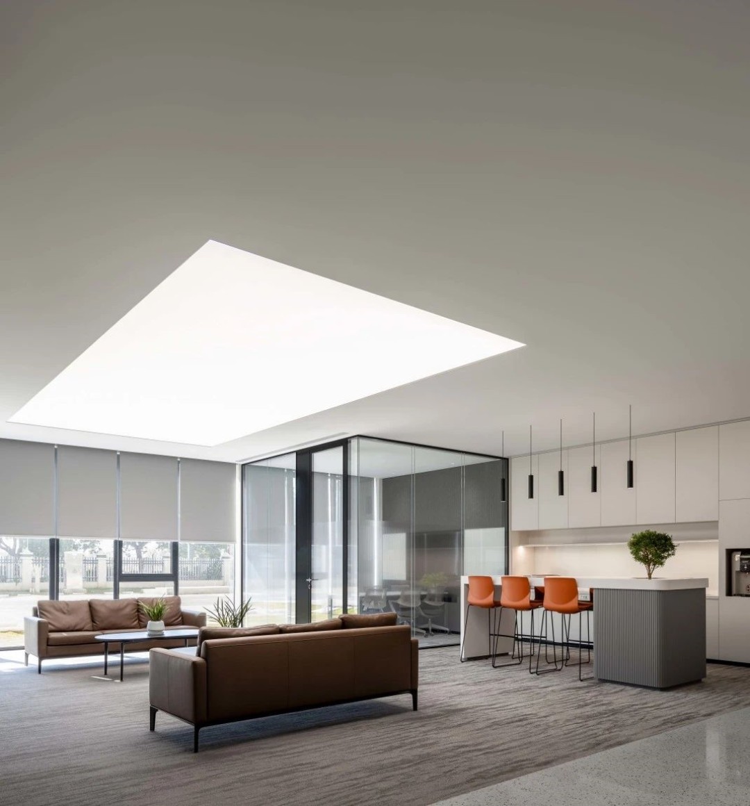 這不僅僅是一處工作場所,更是一個充滿生活氣息與創(chuàng)意靈感的社交天地。在這里,員工們可以在舒適的環(huán)境中自由交流、放松身心,讓思維的火花在碰撞中燃燒。從Geosheen極成明裝筒燈那柔和而溫暖的光線,到貼合人體曲線的家具,再到綠意盎然的公共區(qū)域,每一個細節(jié)都像是精心雕琢的藝術(shù)品,彰顯著東山精密在辦公設(shè)計上的匠心獨運。這種設(shè)計不僅滿足了我們對美的感性追求,更在實用性上達到了極致。