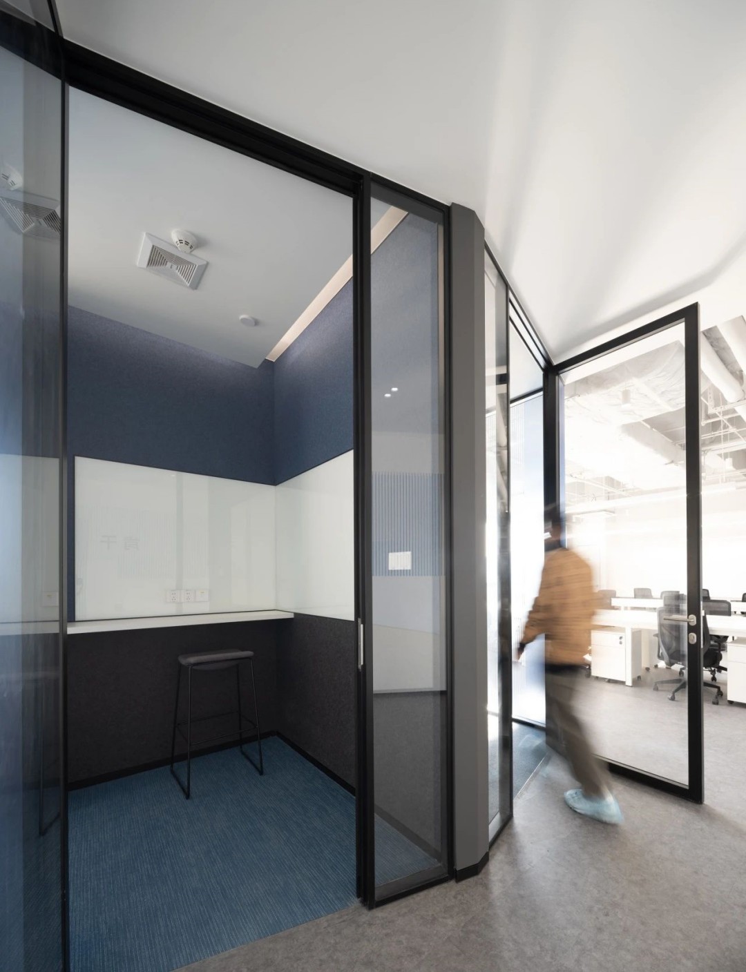在追求開放與協(xié)同辦公的同時,并沒忽視個人隱私與專注工作的神圣空間。在這片繁忙的開放辦公區(qū)域中,精心設(shè)計的“電話亭”成為了平衡開放與私密需求的巧妙之作。