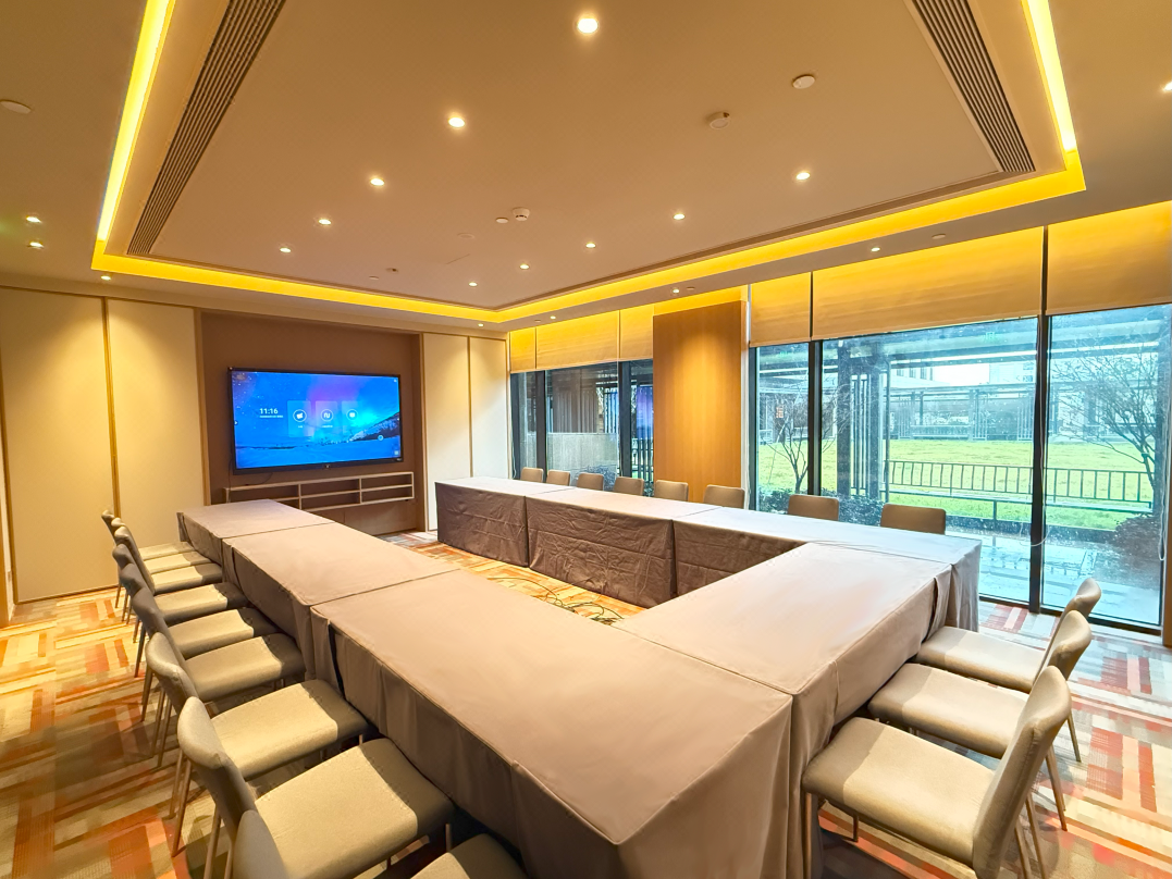 會(huì)議空間以可拆分的拼裝式布局、巨幕視野和先進(jìn)的設(shè)備配置,以及嵌入式防眩天花燈與暗藏氛圍燈光的巧妙結(jié)合,為賓客打造了一個(gè)既專業(yè)又舒適的會(huì)議環(huán)境。無論是會(huì)議研討、培訓(xùn)活動(dòng)還是商務(wù)接待,這里都能滿足多維度的功能需求。高效的專業(yè)服務(wù)和靈活的空間設(shè)計(jì),進(jìn)一步確保了會(huì)議的順利進(jìn)行,為賓客帶來無與倫比的會(huì)議體驗(yàn)。