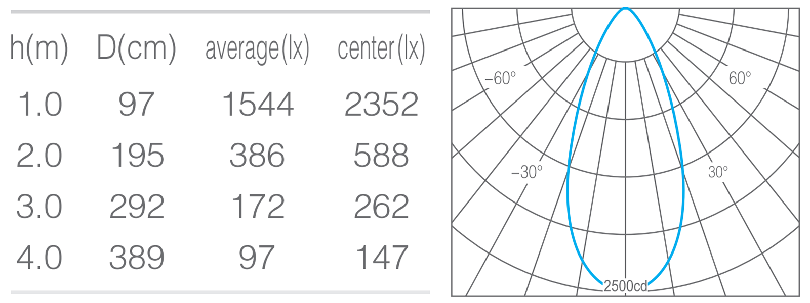 - 光束角60°°