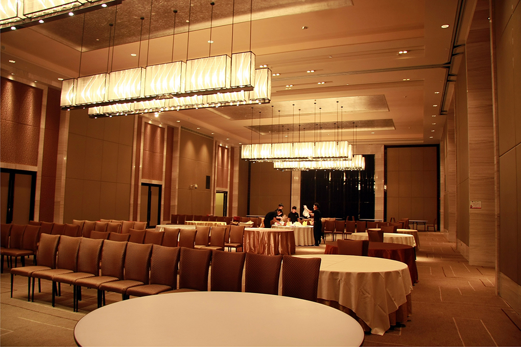 酒店多功能廳通常用于接待、餐飲、宴請(qǐng)、會(huì)議、論壇等活動(dòng),在酒店構(gòu)成中宴會(huì)廳具有很重要的地位。多功能廳照明應(yīng)為塑造多種氛圍進(jìn)行合理的配置,可采用智能控制實(shí)現(xiàn)模式的多樣性,如宴請(qǐng)模式、會(huì)議模式、清掃模式等,還可以在視覺效果上有不同的藝術(shù)氛圍如華貴、神秘、浪漫、歡快等;燈具色溫3000K,照度≥300Lx,顯色性≥85。