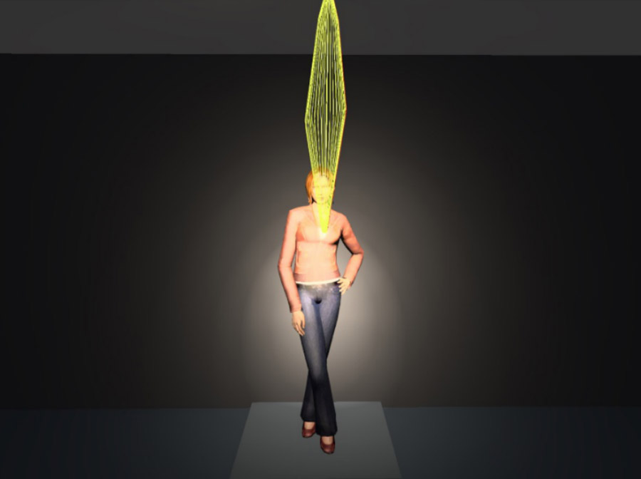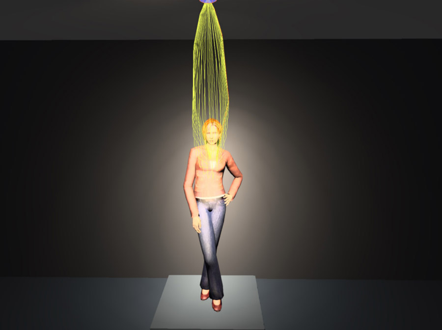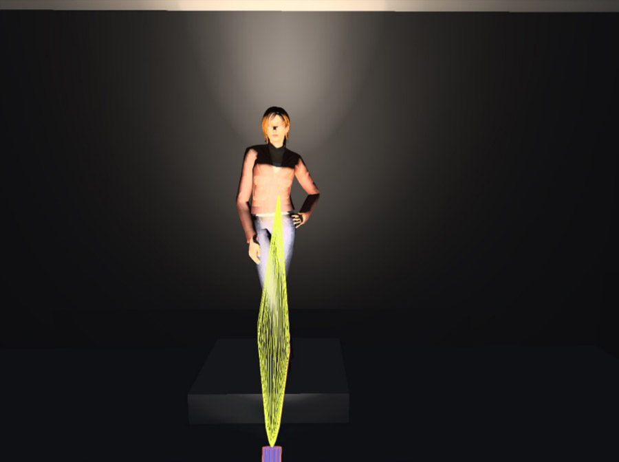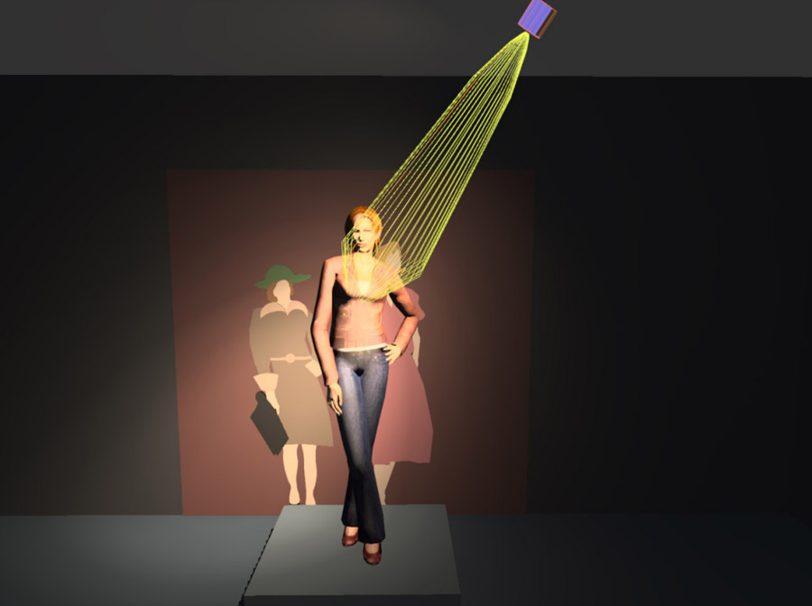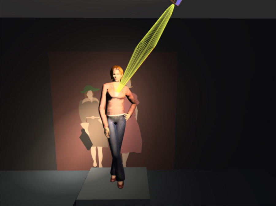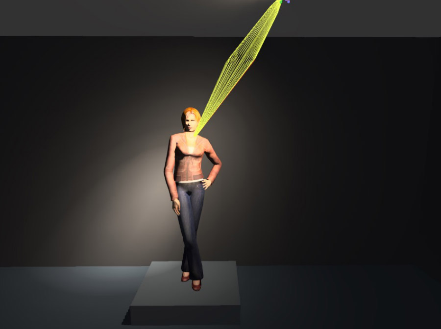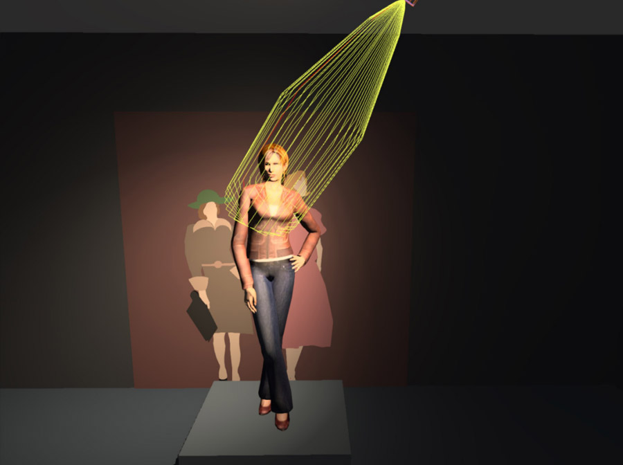 圖:15°光束角的軌道射燈從模特的正前下方往上照明,可以表現(xiàn)較高模特的細(xì)節(jié)(模特內(nèi)心是崩潰的?。?