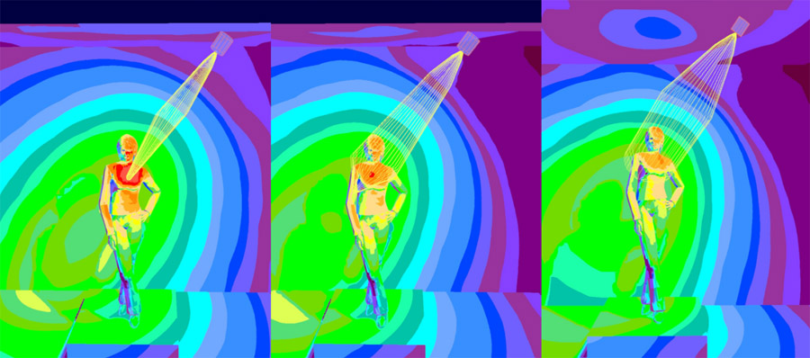 同一盞燈,在不同的位置上對模特的照明效果也盡不同。(以15°光束角軌道射燈為例)