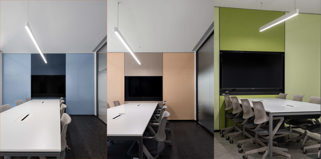 色彩選擇和材質(zhì)運(yùn)用體現(xiàn)了對多功能性和舒適感的追求,米色的平和穩(wěn)重,藍(lán)色與綠色的活力與創(chuàng)造力,不僅反映了公司的品牌形象,還微妙地影響著員工的生產(chǎn)力和創(chuàng)造力。