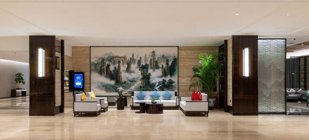 大堂以寬敞明亮的空間和精心挑選的高檔家具打造,展現(xiàn)出賓客尊貴的待遇。頂部嵌入式防眩天花燈與現(xiàn)代吊燈交相輝映,暖色調(diào)為主的燈光,營造出溫暖而典雅的氛圍。