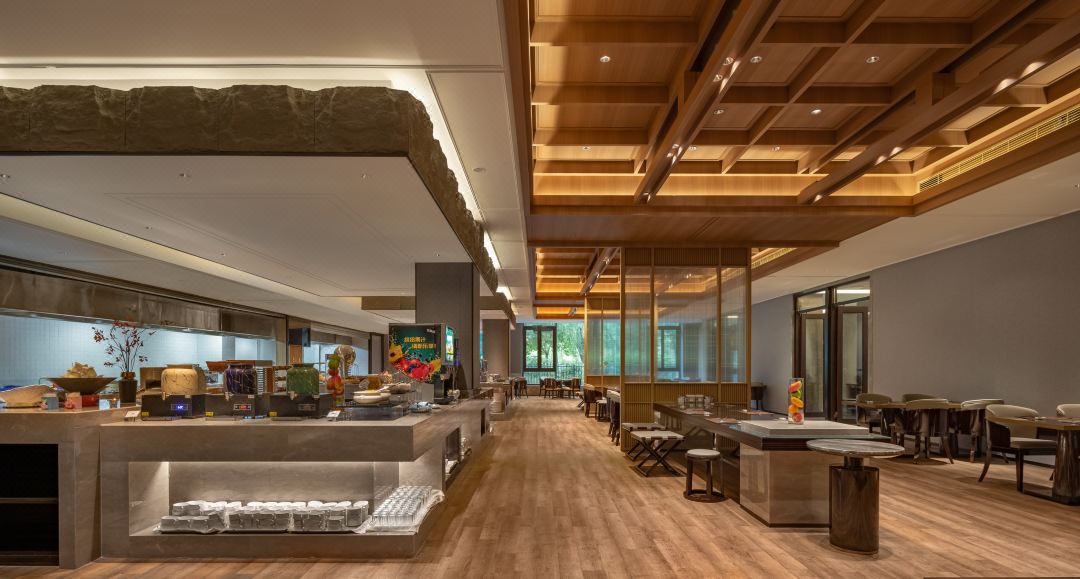 餐廳采用了大面積的落地窗設計,使賓客能夠欣賞到城市的美景,同時也讓自然光線充分照射進室內(nèi),增加了舒適感。