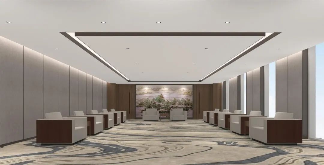 貴賓接待區(qū)的風格以現代中式為主?,F代中式風格的家具款型,結合了中式家具的端莊造型和現代家具的舒適熱情。室內設計、軟裝設計以及專業(yè)燈光的結合表現,給到來的貴賓一種熱情且莊重的感覺。