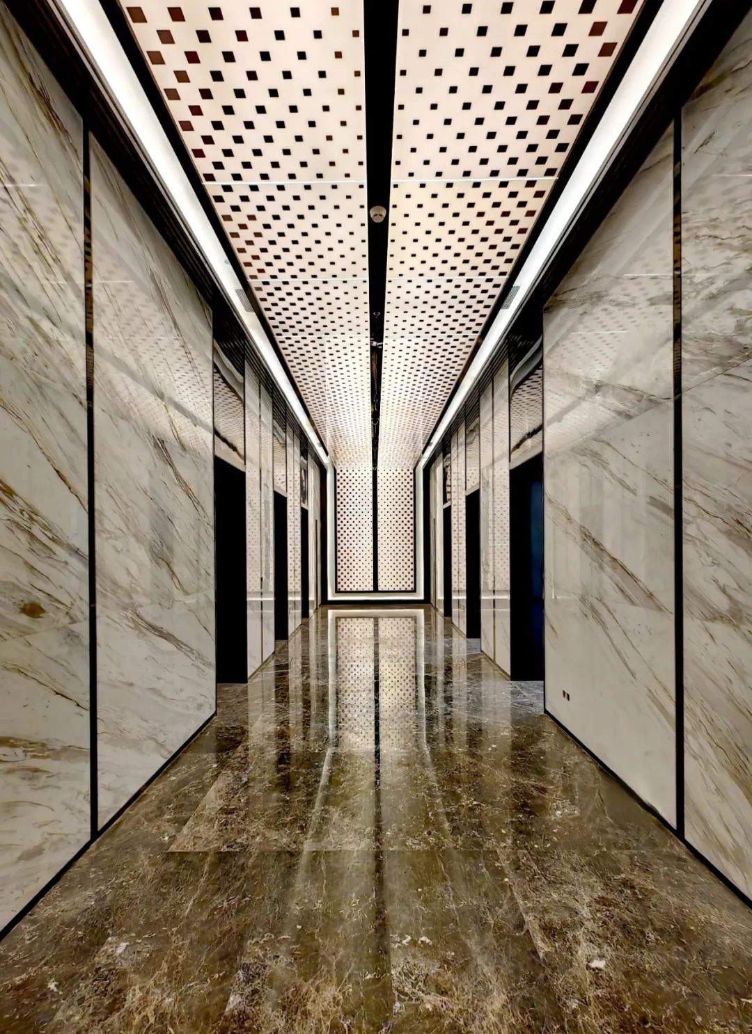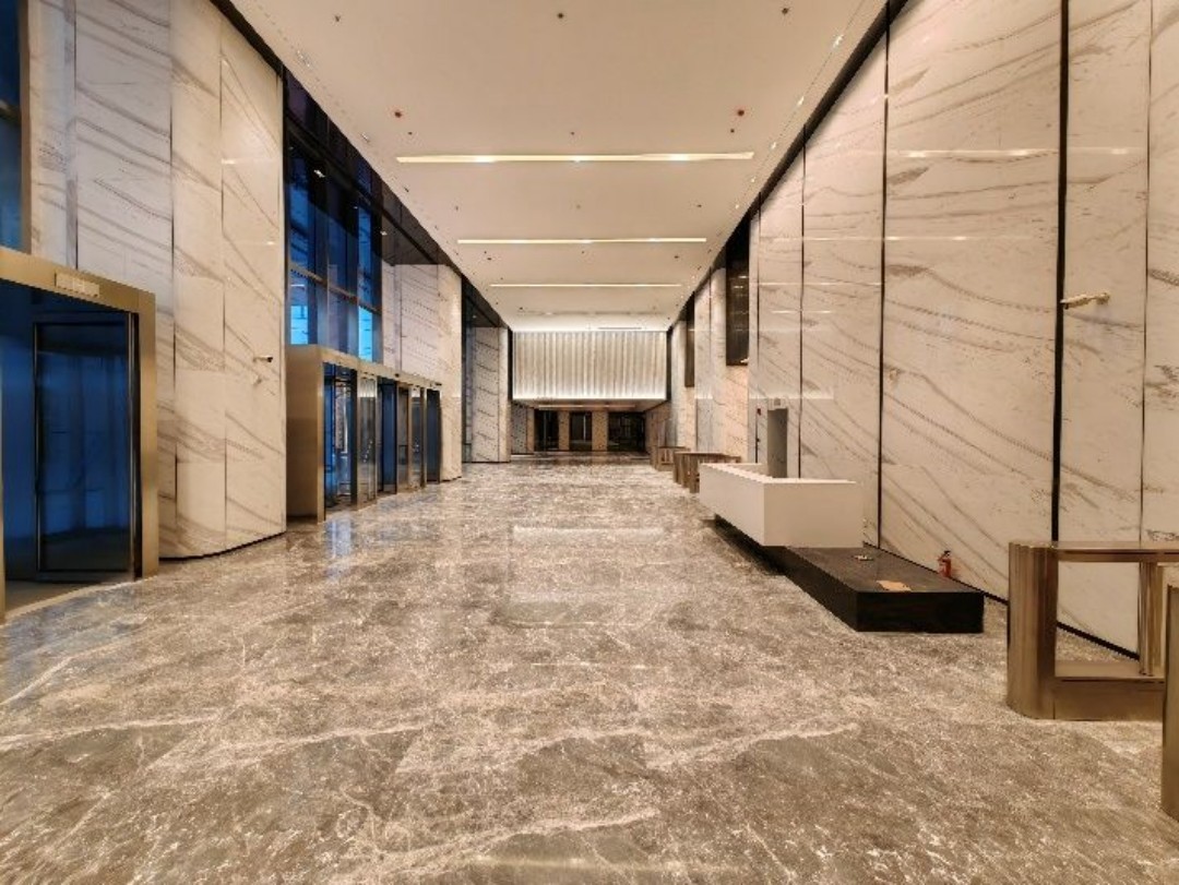 從“城市客廳”便可直接進(jìn)入上海信泰中心雙子地標(biāo)寫字樓,約10-11米挑空大堂,整個(gè)大堂空間采用大理石與金屬的材料組合,打造了一座具有尊崇感與藝術(shù)感的形象展示空間,提升入駐企業(yè)的辦公體驗(yàn)。