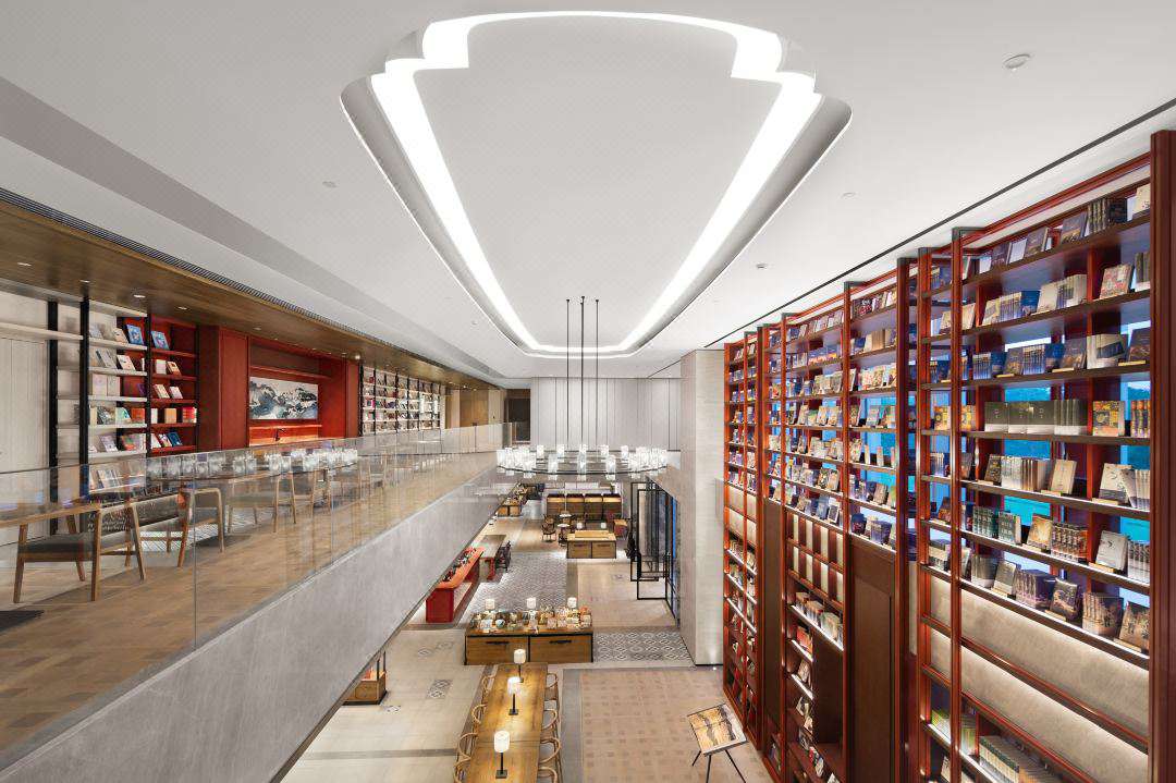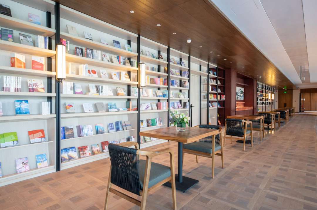 酒店大堂將以圖書展示,圖書零售以及文創(chuàng)產(chǎn)品零售等配以酒店大堂吧精致茶歇軟飲,為來往賓客提供周到貼心的服務(wù)。整個(gè)區(qū)域收錄古今中外圖書共計(jì)5400冊。精致的原木色配黑色框架的書架,大長桌配合著柔和的燈光與整體空間相呼應(yīng),讓人在步入該區(qū)域時(shí)能迅速沉淀心緒。在這里,燈光是知心伴讀者,是引領(lǐng)你開啟書海旅程的啟明星。