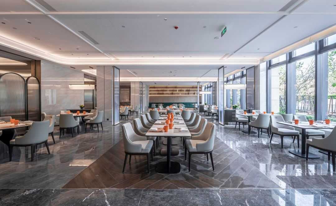 全日餐廳內(nèi)視野開闊、動(dòng)線明朗,燈光處理上簡(jiǎn)潔明了
