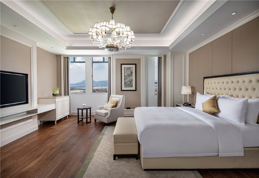 酒店共有258間華<span letter-spacing:0.544px;white-space:normal;background-color:#ffffff;color:#515050;font-size:13px;text-indent:34px;box-sizing:border-box="" !important;overflow-wrap:break-word="" !important;"="" style="margin: 0px; padding: 0px; outline: 0px; max-width: 100%;">居客房,呈“回”字分布,智能門鎖,高速無限網(wǎng)絡(luò)配套設(shè)施應(yīng)有盡有,床頭鑲嵌“古厝屋檐”浮面繡,古樸雅致,推窗觀望,遠(yuǎn)離喧囂,坐看云起??头康臒艄庖彩怯幸环v究,吊頂隱藏線條燈照出均勻的光感,與嵌入防眩天花燈組合起來豐富的頂面,讓空間具備層次感,天花中間的裝飾吊燈提供柔和的燈光同時(shí)增加室內(nèi)的裝飾性,讓客房內(nèi)的空間更具視覺吸引力,形成一種柔和、明亮飽滿而富有情調(diào)的氛圍。