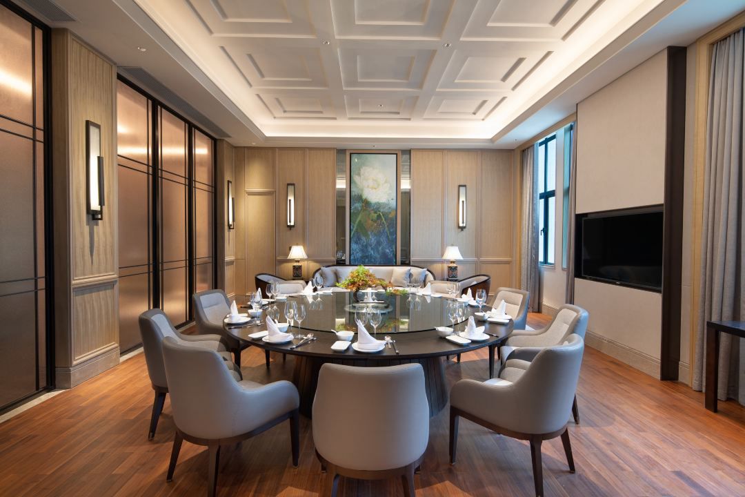 松花釀酒,春水煮茶,古香華苑餐廳位于酒店2樓,木作雕檐隔斷室外的嘈雜,傳統(tǒng)吊飾溫馨如畫,獨(dú)立舒適的包廂服務(wù)傳承閩菜神韻,觥籌交錯(cuò)間盡伸雅懷。餐廳共有6間獨(dú)立包廂,面積30-62平方米不等。燈光方案暗藏?zé)魩c防眩天花燈相結(jié)合,功能需求燈光和氛圍的營造都滿足。部分房間增加了裝飾吊燈,變得視覺感更強(qiáng)的同時(shí)增添了獨(dú)特性。