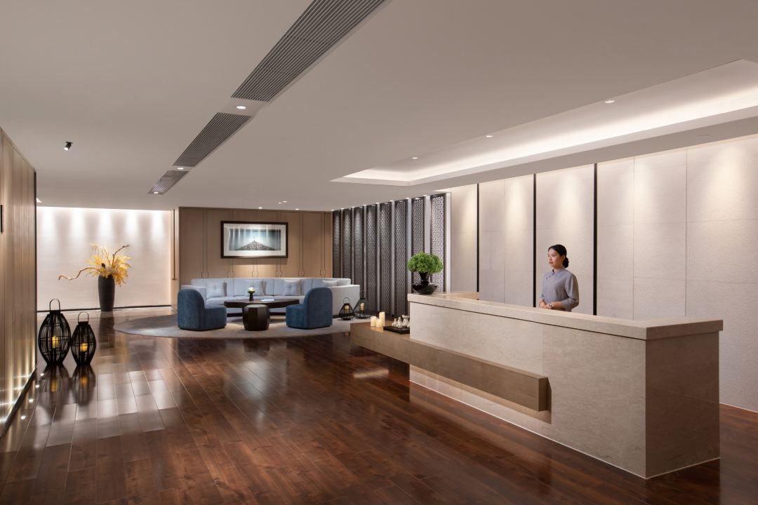 震撼,Geosheen極成嵌入防眩天花燈對墻上精美古典藝術(shù)品進(jìn)行重點(diǎn)凸顯,讓客人感受到大堂空間的古樸典雅和藝術(shù)氣息。造型邊緣暗藏的線條燈發(fā)出的光讓整個(gè)造型更立體。頂部暗藏的線條燈、嵌入天花中防眩天花射燈以及現(xiàn)代風(fēng)的裝飾吊燈三者結(jié)合,突出大堂空間的設(shè)計(jì)特點(diǎn),以增強(qiáng)客人的視覺體驗(yàn),營造舒適典雅的大堂空間氛圍。