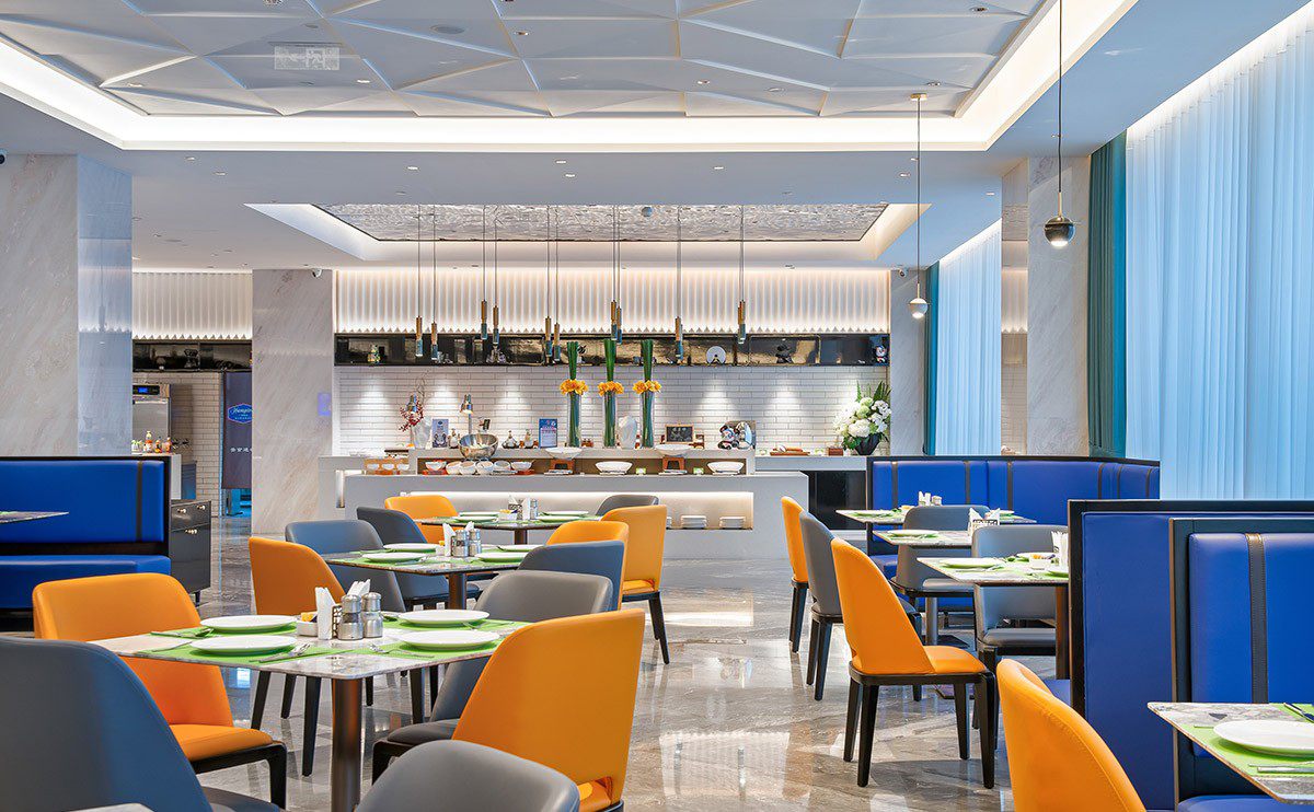 如今獨特餐廳空間,已成為餐廳設計的一種時尚。人們在進餐過程中,不僅是滿足生理的需求,通過低色溫的超防眩效果的天花燈結合間接光營造的空間氛圍,提升食欲和心理的舒適感,在品味不同美食的同時,能為顧客帶來視覺和心理上的滿足。