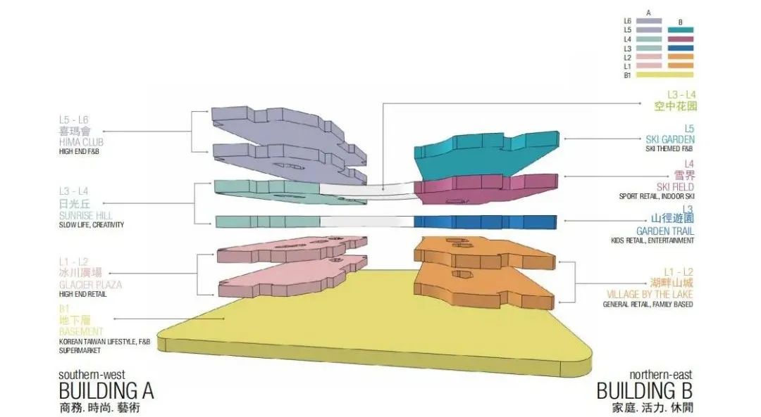 喜瑪拉雅購物中心定位為藝術(shù)生活體驗(yàn)、潮社交系購物中心,總體量約10萬方,分為A、B兩棟,地下1層,地上6層。打造一個(gè)融合而富有生機(jī)的未來城市空間,一個(gè)真正的藝術(shù)生活場所。