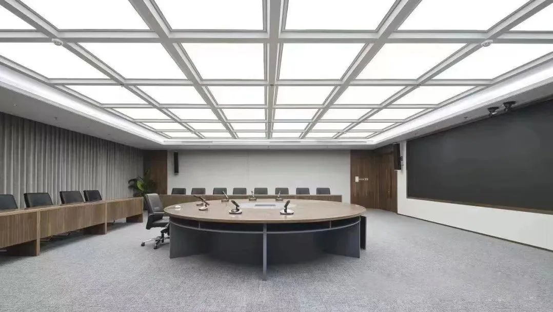 大片方格形的燈光使會(huì)議室透光均勻自然