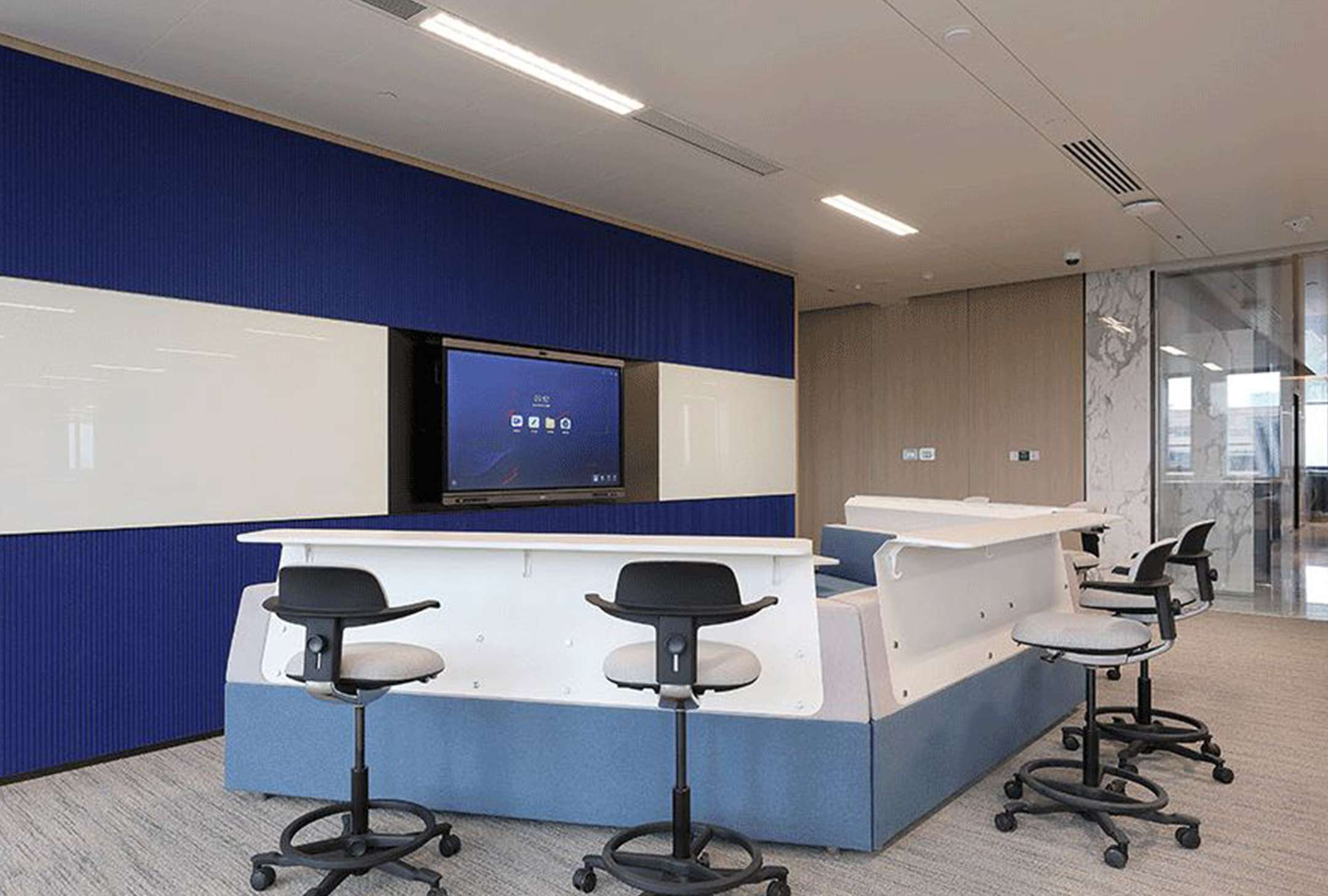 綜合辦公區(qū)以經(jīng)典簡(jiǎn)約的米白色為基調(diào),整體寬敞明亮,輔以沉穩(wěn)的藍(lán)色點(diǎn)綴,以風(fēng)格統(tǒng)一的設(shè)計(jì)元素呈現(xiàn)于各個(gè)區(qū)域,塑造出和諧而又不失靈動(dòng)的氛圍。