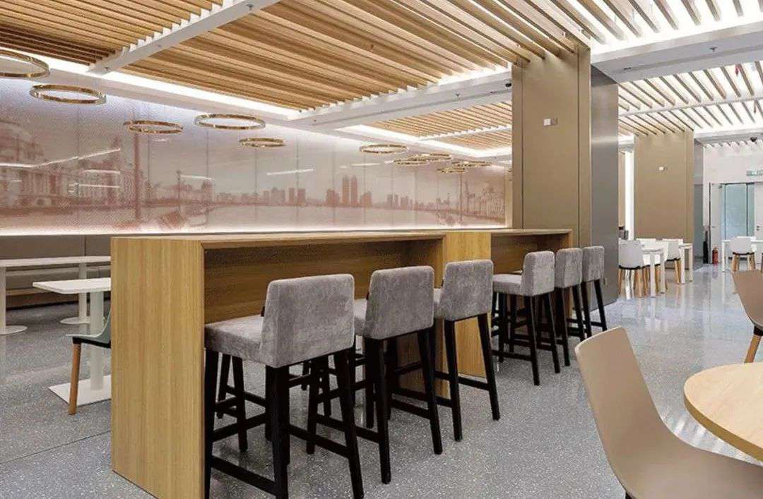 休閑區(qū)的光效設(shè)計(jì)重點(diǎn)是令使用者可以感到片刻的放松和休閑,嵌入式格柵線性燈均勻排列、簡(jiǎn)約的射燈刻意做了留白處理,打破規(guī)整的辦公氛圍,突出簡(jiǎn)約的設(shè)計(jì)與動(dòng)力之感。