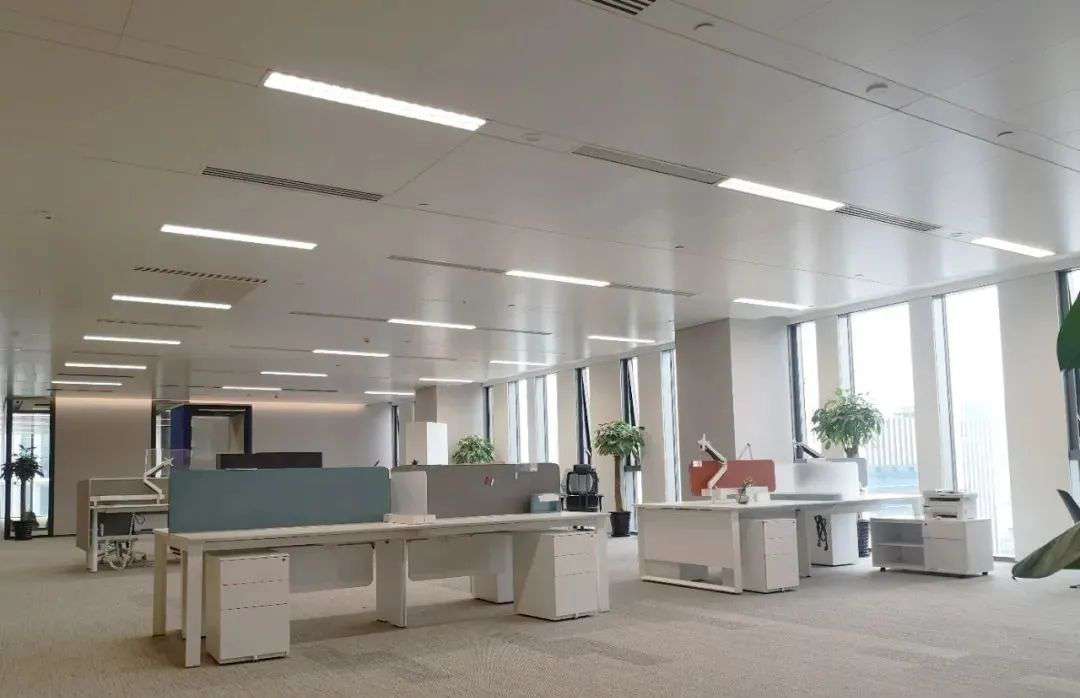 在整體綜合辦公區(qū)的燈光應(yīng)用以線形照明為主,嵌入式格柵條形燈散發(fā)出柔和又不刺眼的光線,增加局部照明,4000K色溫白光與室內(nèi)的灰白色調(diào)相呼應(yīng),讓辦公環(huán)境更明亮,體現(xiàn)高效、利落的工作氛圍。