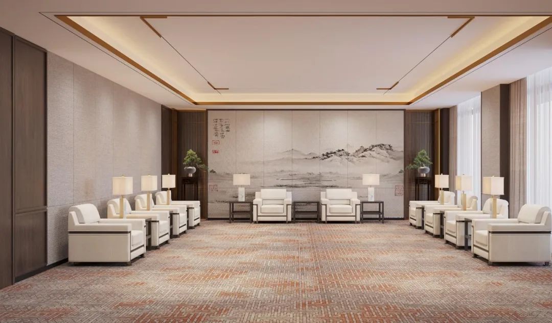 山水畫是中國人情思的沉淀,濃墨重彩、云淡風(fēng)輕的山水畫將辦公室呈現(xiàn)出意境和氣韻,同時(shí)在中式的古典結(jié)構(gòu)之上結(jié)合現(xiàn)代、簡約、雅致的空間風(fēng)格,延續(xù)新中式的可持續(xù)風(fēng)格。