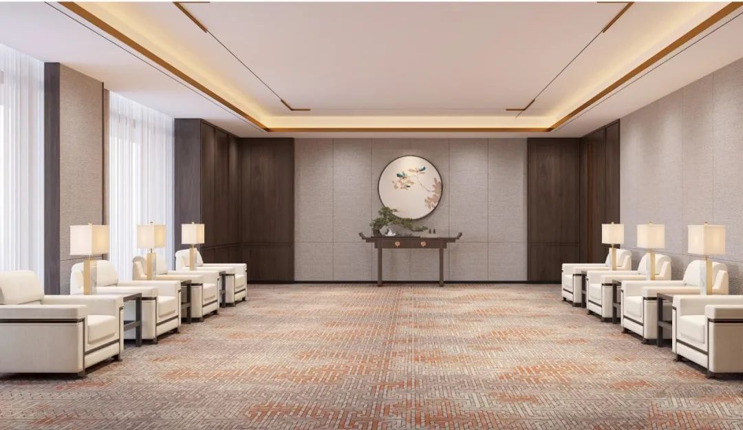 大堂營造出一個(gè)具有東方韻味的空間,納自然之形、造空間之意,每個(gè)人心中都有一方凈土,關(guān)乎自然、清幽、無憂的唯美之境,而暖黃色的燈光籠罩著大堂,整個(gè)空間開闊、明亮而又溫暖。