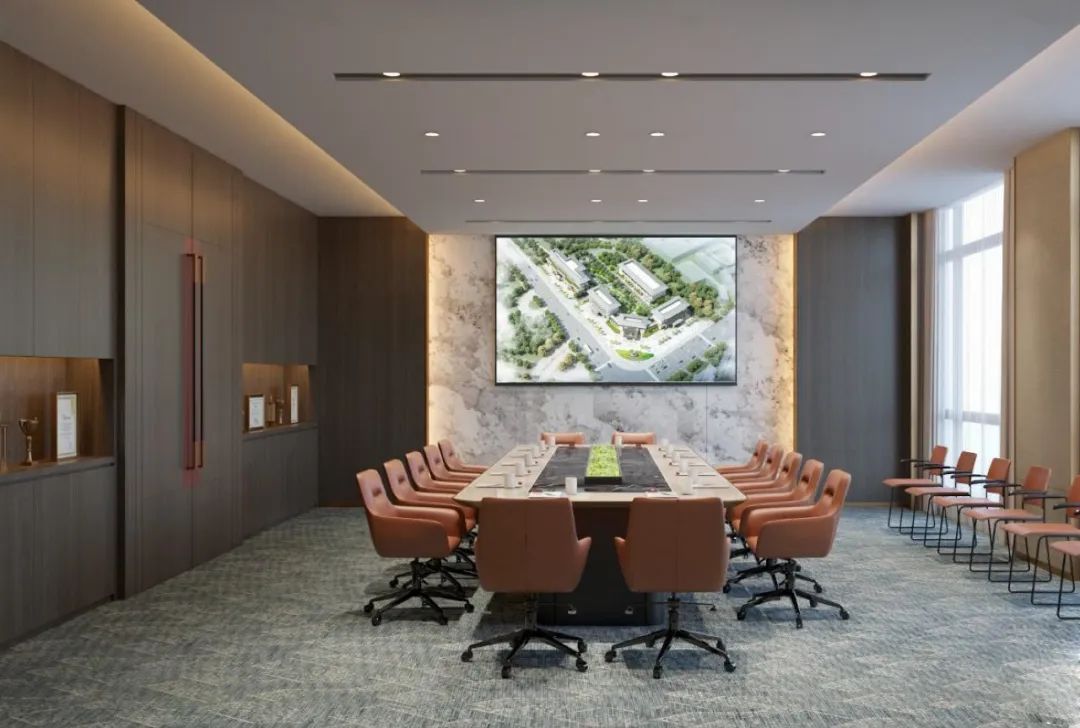 會議室采用素雅大氣的背景墻顏色,自然和寧靜、互動與融合,在明亮干凈的空間內(nèi)加了幾分靜謐沉穩(wěn),讓空間擁有無限的包容性,適合來一場思想上的碰撞。