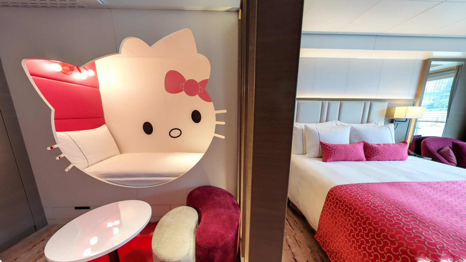 女孩兒設(shè)計(jì)了可愛的粉白色 “Kitty”床