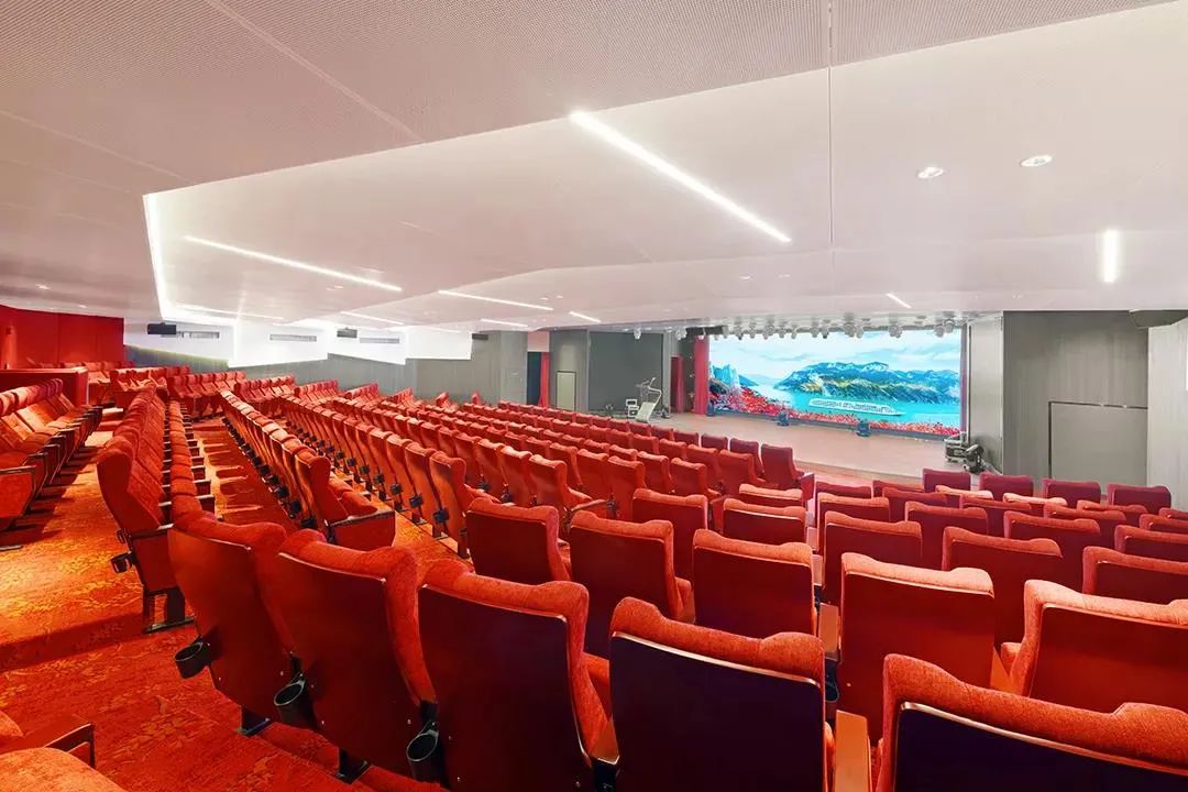 扇形階梯式的設(shè)計(jì),整體色調(diào)采用牡丹紅