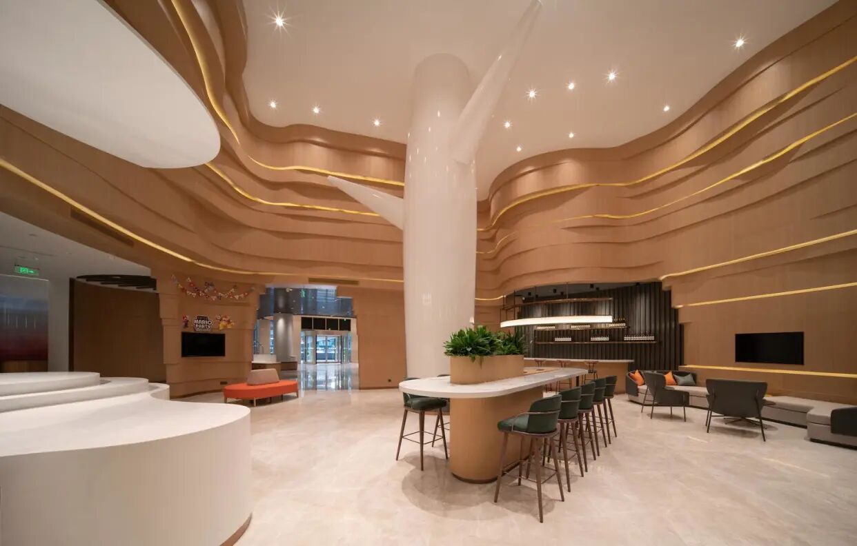 走進酒店,映入眼簾的是流暢的線條與燈光