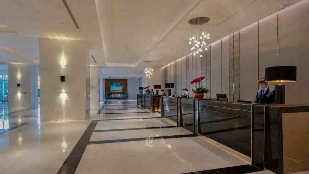 邁入酒店,大堂里的璀璨燈光