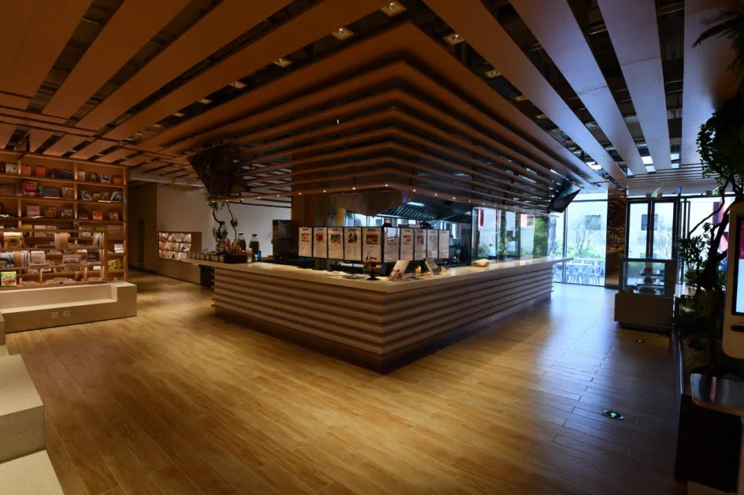 讀書閣整體面積約3500平方米,分為兩層,圖書種類約一萬(wàn)余種,藏書量約五萬(wàn)余冊(cè),文創(chuàng)商品約八百余種,共設(shè)有五大不同主題的藝術(shù)展,展品近百件,綠植覆蓋率約20%。