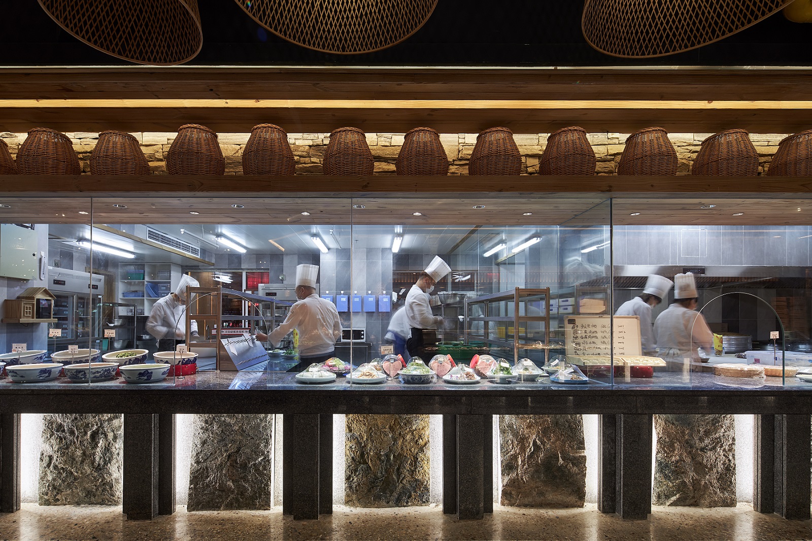 食材區(qū)域應(yīng)用燈光色溫4000K、高顯色性、無炫光的光環(huán)境。完美呈現(xiàn)食材鮮活度。專業(yè)燈光讓食材能講話,激發(fā)客戶品嘗的興趣。