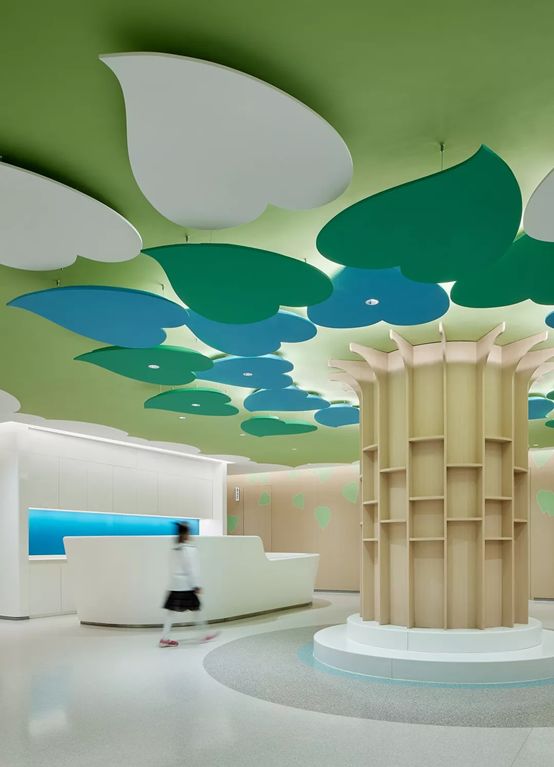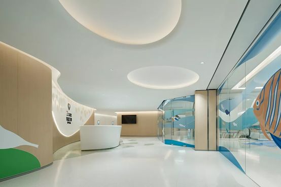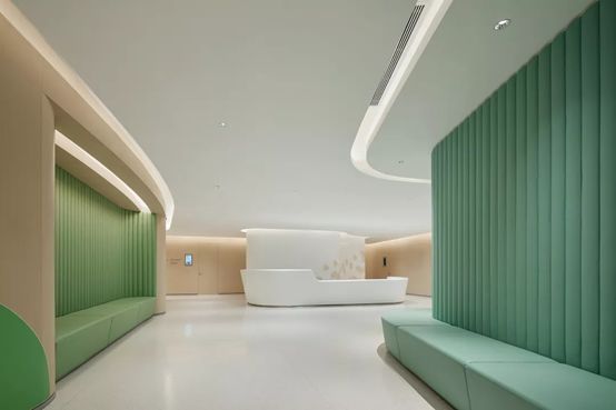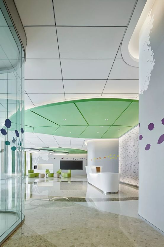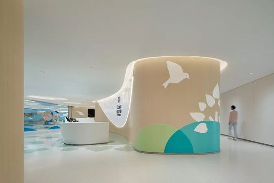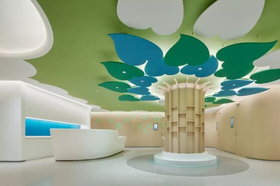 眾所周知,接待大廳是兒童醫(yī)院的門面擔當,也是兒童醫(yī)院的主要組成部分之一。當你踏進接待大廳,第一眼的視覺信息,就奠定了你對這家兒童醫(yī)院的初步印象,由于兒童的低齡化和心智不成熟,更導致他們對醫(yī)院空間有更為敏銳的感知。