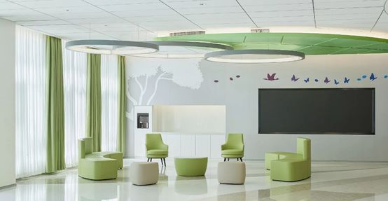 此外,候診區(qū)的照明應以營造環(huán)境氛圍為重點,打造像家一樣的溫馨環(huán)境,幫助兒童保持平和心情,耐心等待候診。