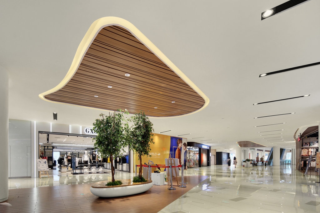 如果增加一些細(xì)節(jié)的燈光設(shè)計(jì)——裝飾性的照明或者重點(diǎn)照明,比如設(shè)置藝術(shù)裝置的重點(diǎn)照明、給綠植提供重點(diǎn)照明等,就會(huì)增加商場的空間層次豐富度。