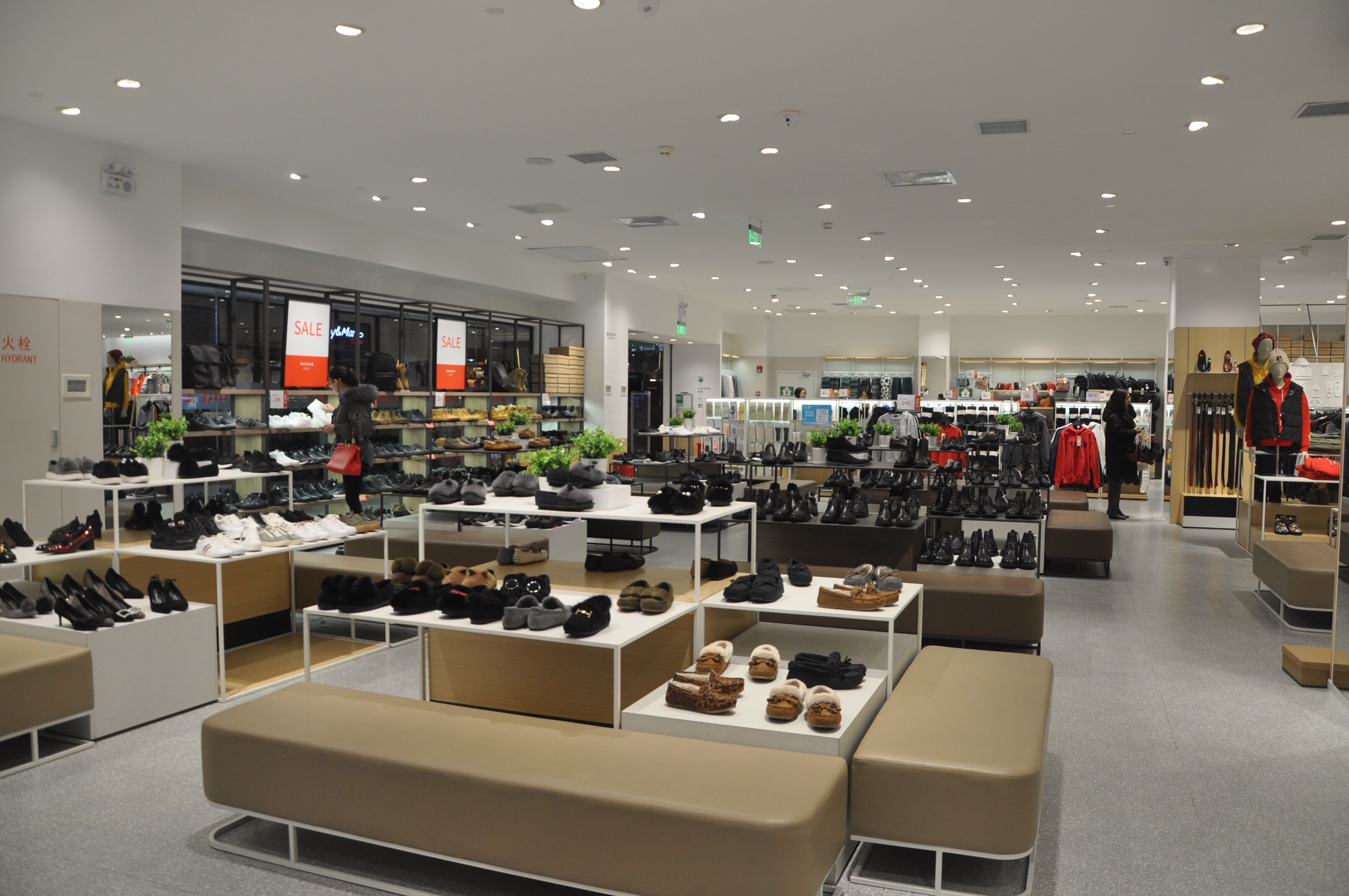 在商場多使用4000K的大環(huán)境下,3500K的色溫與商場其他店面一起并不突兀。但人眼本身對細微的色溫差別是敏感的,更柔和的3500K色溫更容易被熱風定位的目標客戶接受,因而更容易被閑逛的人群識別。無形拉升了熱風門店在其目標群體中的存在感。可以說這個色溫設置得非常有匠心了。