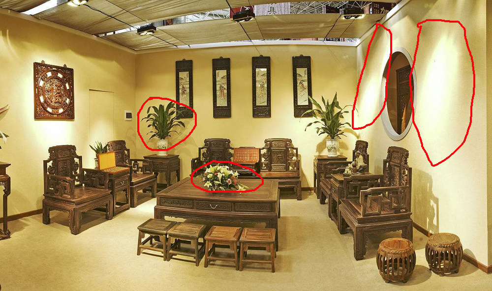 沒(méi)錯(cuò),上圖確實(shí)是一家賣(mài)紅木家具的家私店,但在如此“低劣”的燈光照射下,你還看得出紅木莊重典雅的特點(diǎn)嗎?