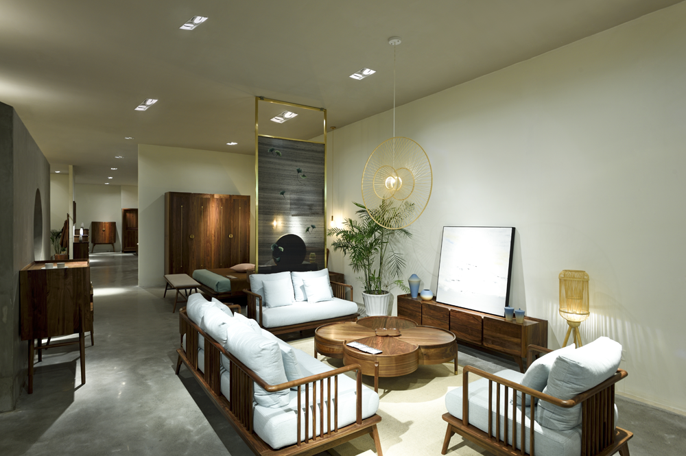 ▲采用高顯色性射燈重點(diǎn)展現(xiàn)家具色彩,同時(shí)配合帶有現(xiàn)代氣息的裝飾性燈具,將新中式家具的木質(zhì)紋理、色彩都淋漓盡致的展現(xiàn)了出來(lái),這樣的家私賣(mài)場(chǎng),誰(shuí)不愿意跟里邊多待會(huì)呢?(來(lái)源:Geosheen極成案例)